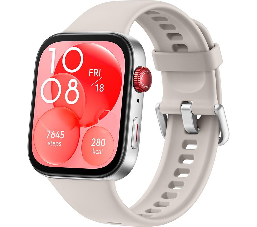 Stay on track with the Huawei Watch FIT 3. The big, bright AMOLED square display shows you your daily stats at the flick of a wrist. Despite being a total eye-catcher, it's so light and thin, you'll hardly know it's there. True to its name, this watch is all about keeping you active. It's packed with health and fitness goodies, like the Stay Fit app for insights, Activity Rings to encourage good habits, and Intelligent Sports Recommendations made for your routine. Plus, when you need a little pick-me-up or some pre-workout action, those Quick Workout Animations are just the ticket.Good to know- Monitor your shut eye with TruSleep 4.0 - Huawei's most accurate sleep tracking yet- Keep tabs on your heart rate and SpO2 with TruSeen 5.5 monitoring- Pick up phone calls on the move with Bluetooth calling- Leave your phone in your locker and listen to your music downloads- A full charge gets you around 10 days of light use or 7 days of heavy use____Please note:- SMS quick replies are only supported on mobile phones running Android 7.0 or later.- Voice Assistant is only supported on HUAWEI mobile phones running EMUI 10.1 or later, which have installed the latest version of the Huawei Health app. This feature is only supported in select countries and regions.- Remote shutter is only supported on Huawei mobile phones running EMUI 8.1 or later. This feature is not supported on iOS devices.- iOS does not support music syncing. Store up to 5000 songs feature is available via OTA updates.