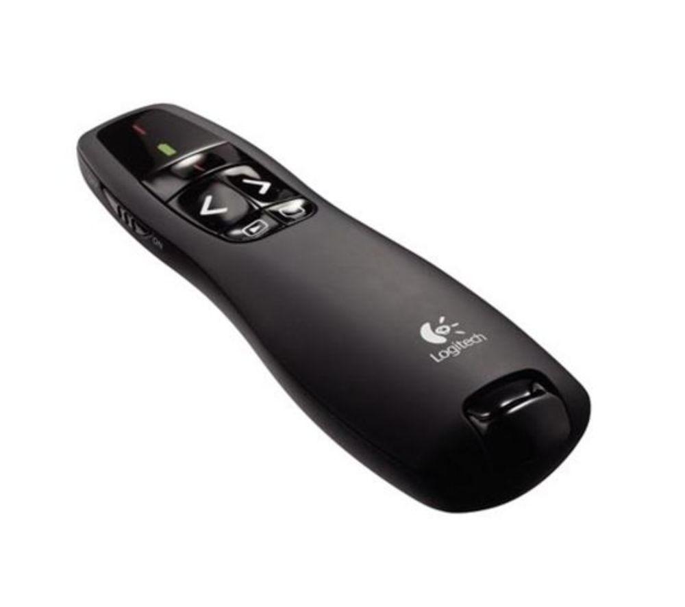 Leave your audience in no doubt when it comes to exactly what you mean with the rather stylish Logitech R400 Wireless Presenter.An authority and professionalism as make your point thanks to the R400 Wireless Presenter's intuitive operation with well-styled and useful built-in slide show buttons. What's more, the R400 is also completely wireless, with an impressive range of 50 ft, so there's no need to worry about being tripped up by trailing cablesThe Logitech R400 Wireless Presenter is a useful piece of kit that won't break the bank.