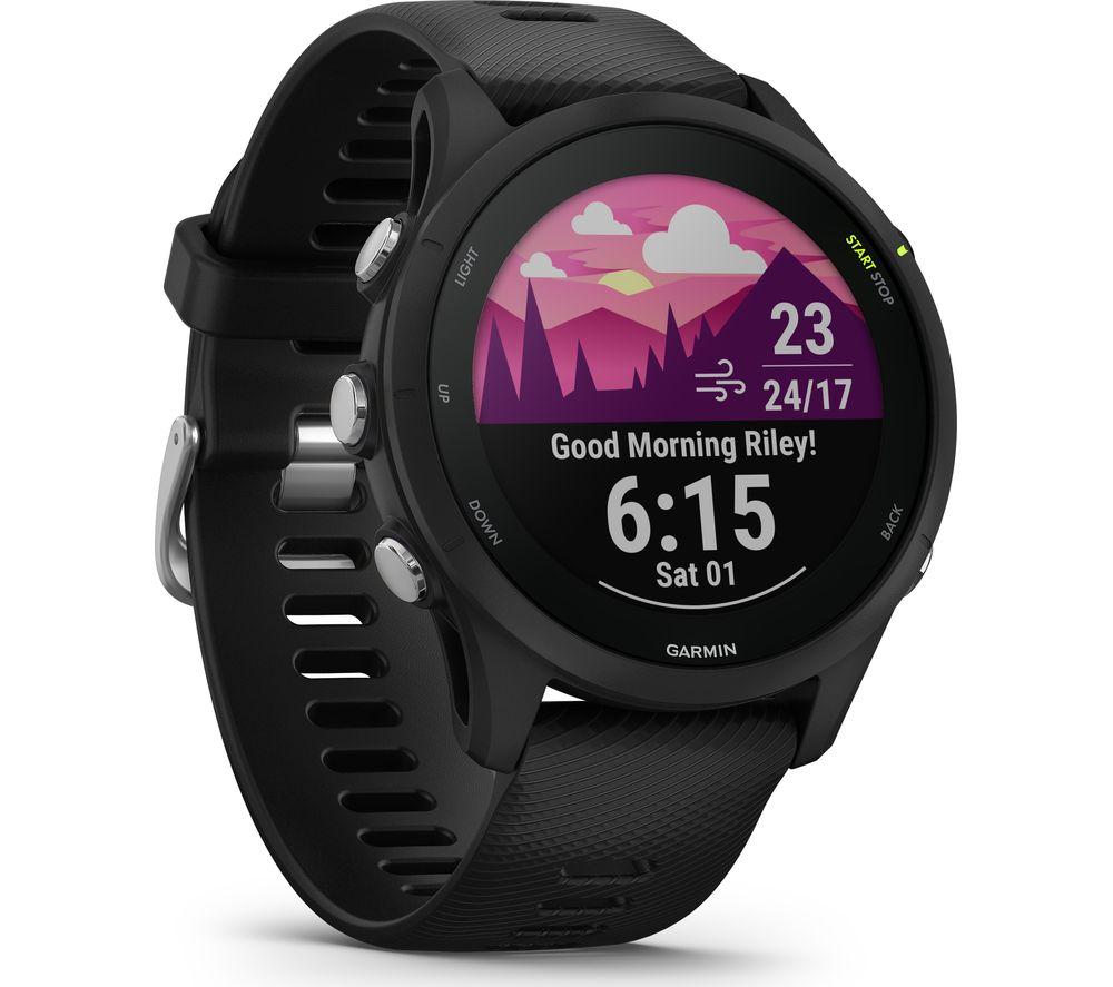 Meet your new personal trainer. This Garmin Forerunner 255 Music's always-on, full-colour display means you'll never miss an important notification again. But it's more than just a pretty face. Morning Report sends loads of useful info like sleep patterns and daily workout routines right to your wrist, so you can start the day motivated. To help you grind out the workouts, this Music edition lets you take your tunes and podcasts along for the ride. There's room for up to 500 songs and if you have premium Spotify, Amazon Music or Deezer you can even sync your offline content. Then just pair your Bluetooth earbuds and hit the road. Good to know - Forget about charging your watch every night - this workhorse has up to 12 days of battery life in smartwatch mode, and up to 26 hours in GPS mode - The Race Widget gives you personalised training tips to help you gain the edge in your next race and leave the competition eating your dust - See your entire weeks' worth of daily suggested workouts, which adapt after every run to match your progress - The HRV Status tracks your heart rate variability while you're catching Zs - it also gives you insights into your wellness, recovery and performance - Prepare for a 5K, 10K and half-marathon with the Garmin Coach, or create your own custom workouts in the Garmin Connect app - The training status lets you know if you're overdoing it or not working hard enough - it also helps you with your recovery times Why we love it “This watch has plenty of energy, with up to two weeks of battery life in smartwatch mode, and 30 hours in GPS mode. Hopefully you can keep up!” - Andrew, Product Copywriter _______________________ Please note: You will need a premium Spotify, Amazon Music or Deezer subscription that allows offline use if you want to save playlists using these services.